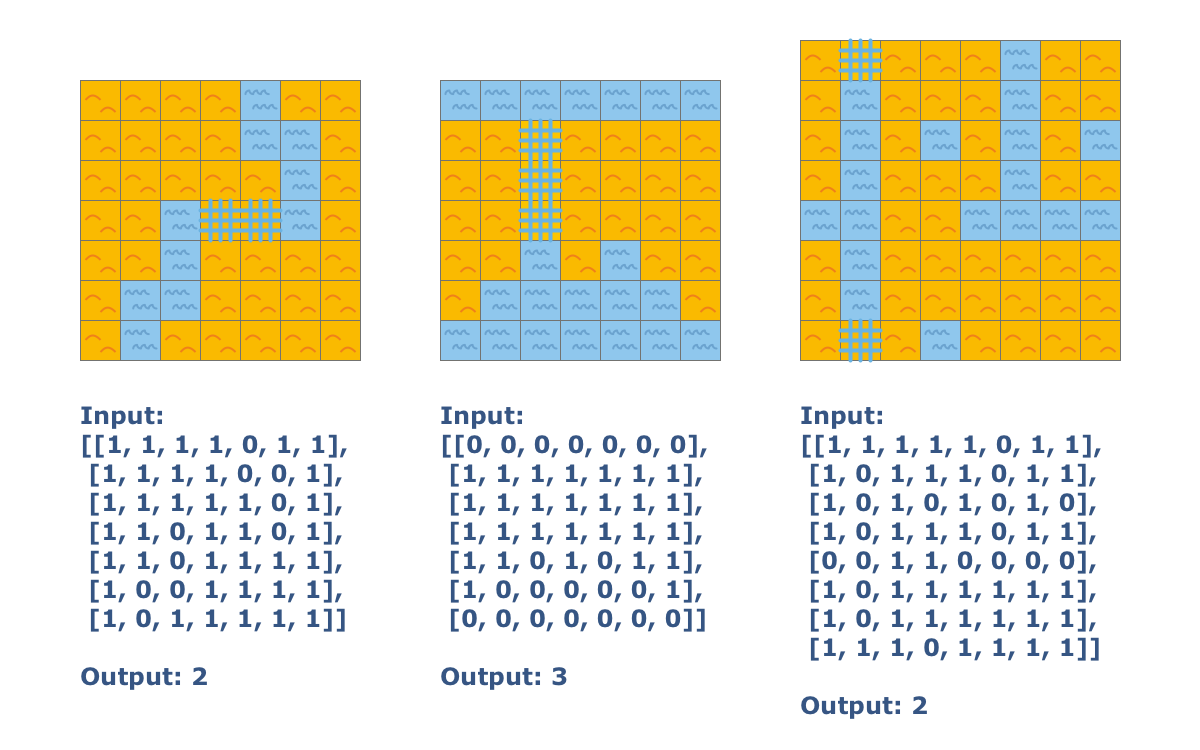 The robots are trying to colonize a new island. There are many rivers on this island and it would be good idea for them to use ships designed for water, rather than their spaceships. Some of the territories do not have a river for transportation from one edge of a field to another. The robots can dig a canal and convert the land to water if need be. We must explore a field map and count the minimum number of cells necessary for a canal that would allow the robots to sail from northern edge of the map to southern edge. The map is in a 2D array, where 0 is water, 1 is land. Cells are connected by their edges.